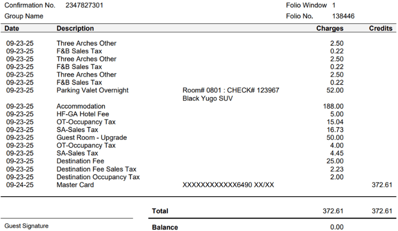 Destination fee of $25, plus sales and occupancy tax on the destination fee.