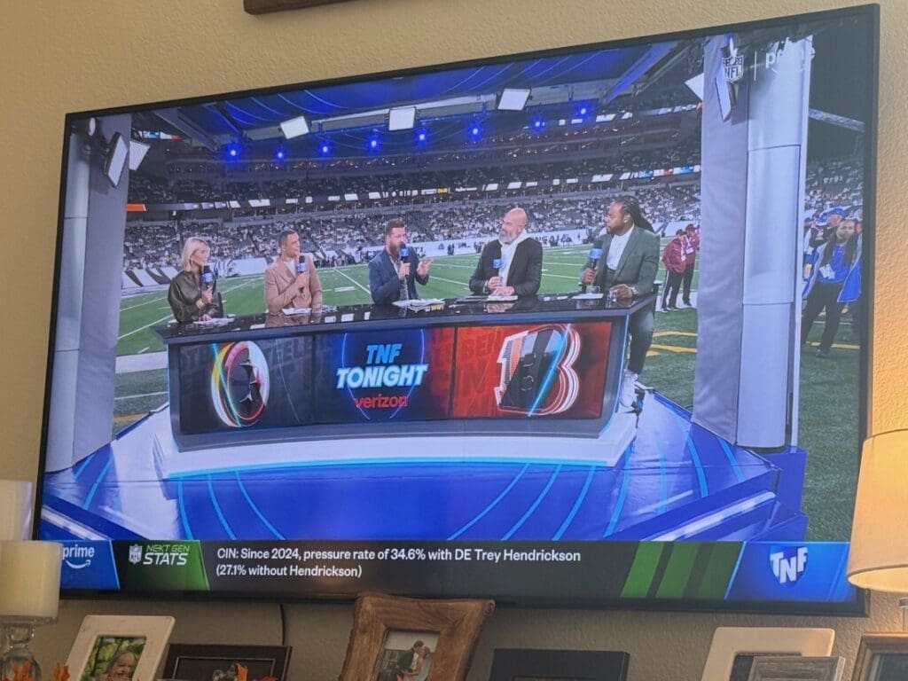 On the Thursday Night Football panel, the woman at the end is Charissa Thompson. Her role is “sideline reporter” but they bring her onto the panel at half time. (She has a BA in Law and Society from UCal Santa Barabara). OK, so here’s the thing: