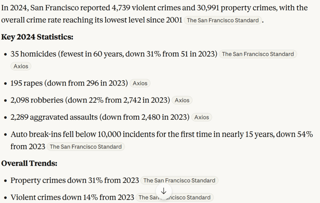 Over the past four years, Michael and I have visited probably 100 or 150 big cities, all around the world. If we broke them into quintiles, San Francisco would be in the top quintile, if that’s helpful for context.