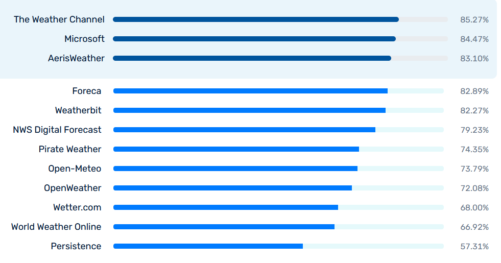 Does Pirate Weather serve the seaborn criminal trade?…Great day for boarding sailing vessels! Stay tuned. Winds out of the south, etc…Is Foreca a Spanish dinnerware manufacturer or is that Forecast abbreviated? And why Weatherbit…how about a forecast that has the whole enchilada and not a little smidgen?