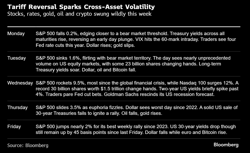 Just for fun, this was a Bloomberg summary of one week of trading last Spring during the tariff kerfuffle. Honestly, did anyone really know how it was going to work out?