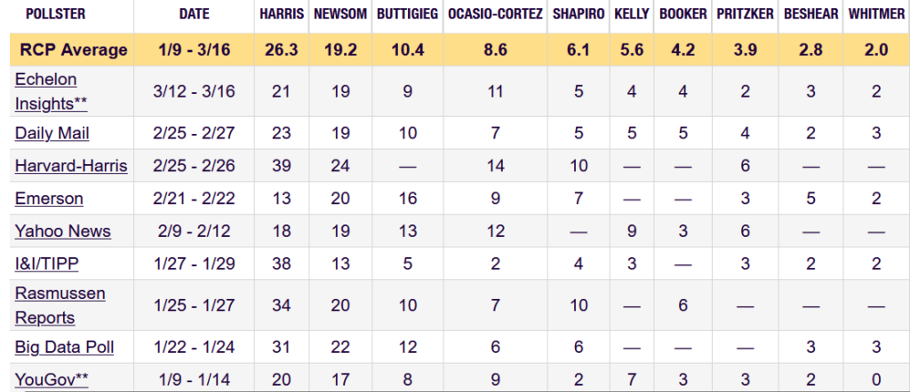 But the Republican base hovers around 40%+ and the Dems similar and those people are not going to be moved by events. Which leaves the swing voters who can be. However, this tells me to ignore headlines like “Trump Approval Plummeting.” He has his posse, it ain’t gonna change. Moving onto 2028: